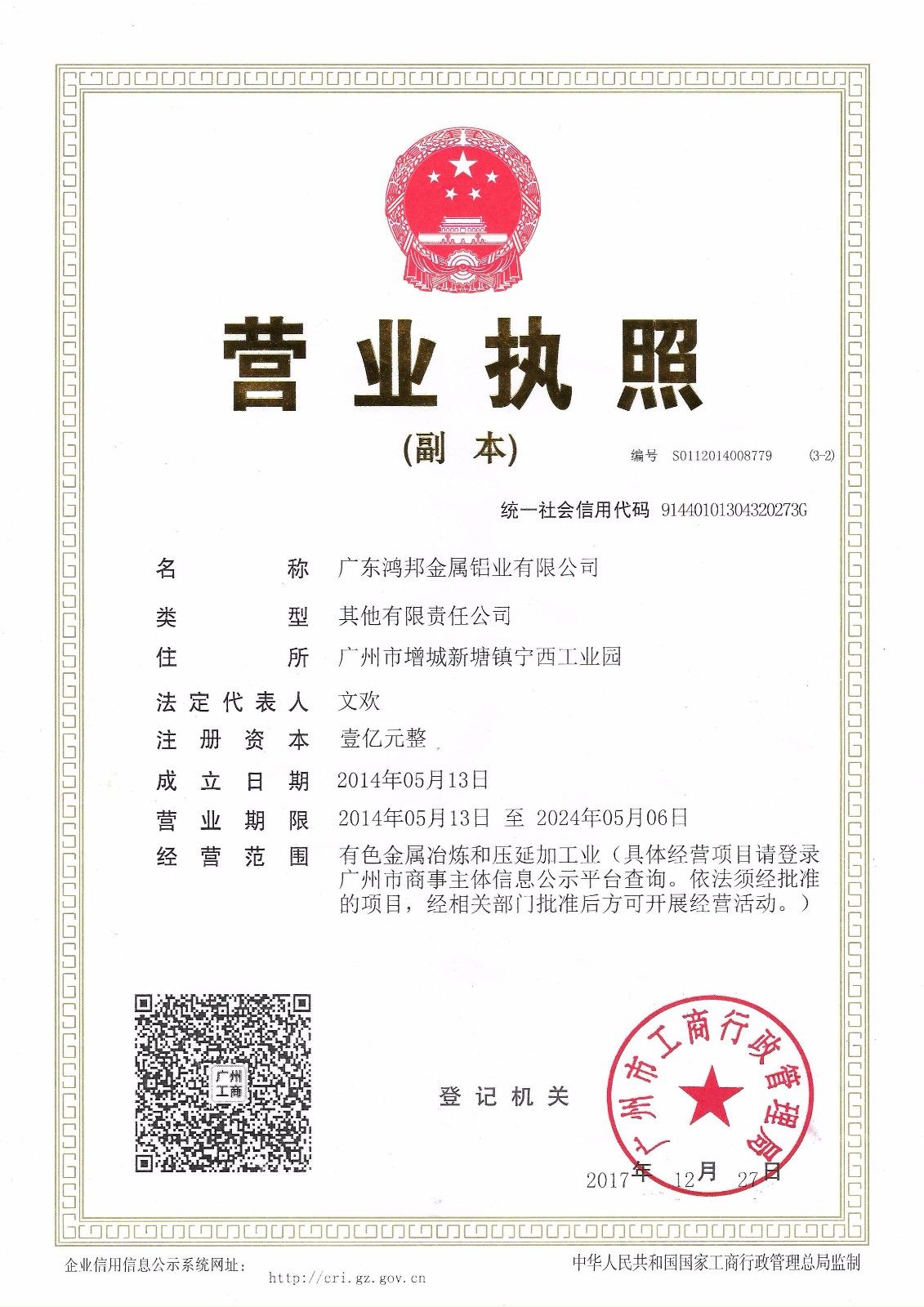 廣東鴻邦金屬鋁業(yè)有限公司成立于2014年5月,是一家由廣州工業(yè)投資控股集團(tuán)有限公司、華勁集…